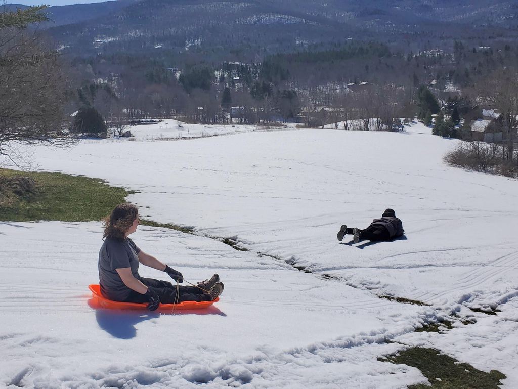 April was pretty exciting because Karen's sister 50th birthday coincided with the total solar eclipse coming to New England. After being amazed by the eclipse in Oregon back in 2017 we all wanted to do it again, so two years ago Karen booked a beautiful Airbnb house in Stowe, Vermont for the long weekend and we invited some family to join us. It snowed shortly before we arrived and there was a perfect sledding hill on the property, and they even provided the sleds so we had a lot of fun with that. We also played plenty of games, went on hikes, toured the Ben & Jerry's ice cream factory, Leo's family did some cross-country skiing, and we all feasted on delicious meals cooked by Leo's mom. After the totality some folks braved the roads to drive home that day (the rest of us waited until the next day). Julia said it was a bit crazy because Google maps claimed that it would take 3 hours to get home, and it continued to give that 3 hour estimate for the next 6 hours. She finally got home after 8 hours of driving with her friends, but she said it was definitely worth it! Vermont eclipse album